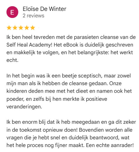 Alles wat je ichaam nodig heeft om te helen, is er al. Het enige wat jij hoeft te doen, is je lichaam de kans geven om los te laten wat je niet langer dient. Parasieten dus.