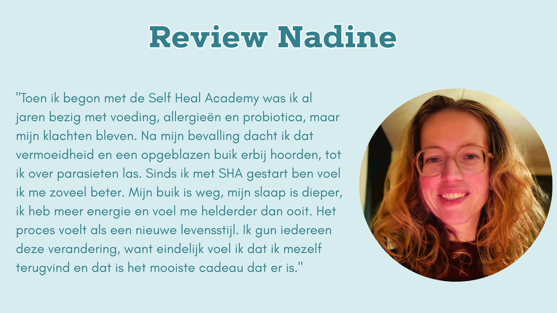 De Self Heal Academy leert je om weer samen te werken met je lichaam. Stel je voor: geen opgeblazen buik meer, vol energie, moeiteloos gewichtsverlies en eindelijk weer zin om volop te leven!